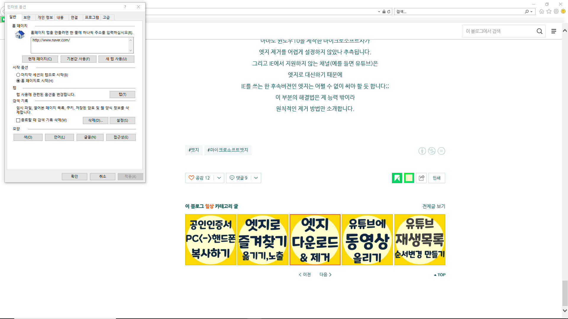 크롬의 차단 기능을 이용하고, 익스폴로러는 차단 사이트에 등록하는 방법이 있네요. 엣지 브라우저도 크롬 기반이기에