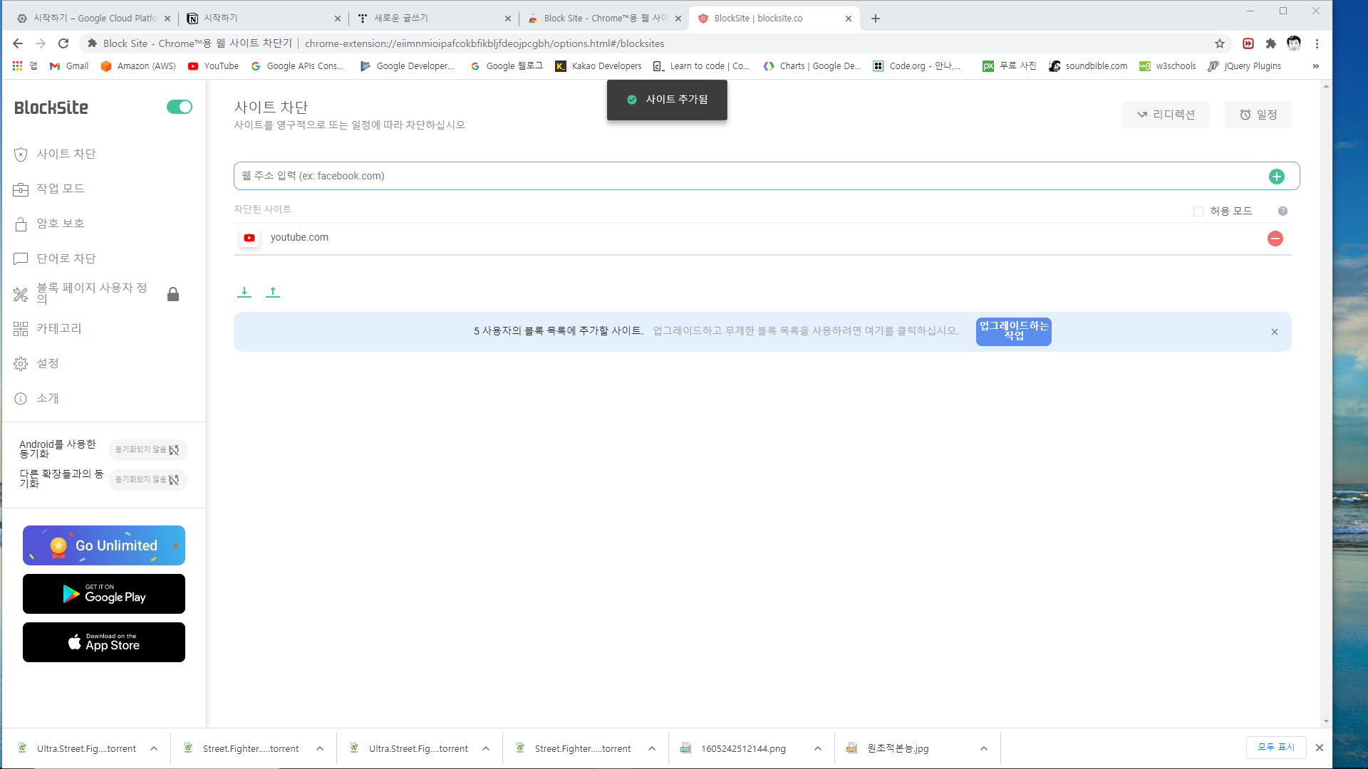 컴퓨터 앞에 있어야 하기에 어쩔 수 없지만, 유투브만 딱 차단하면 좋을거 같아서 찾아봤습니다.