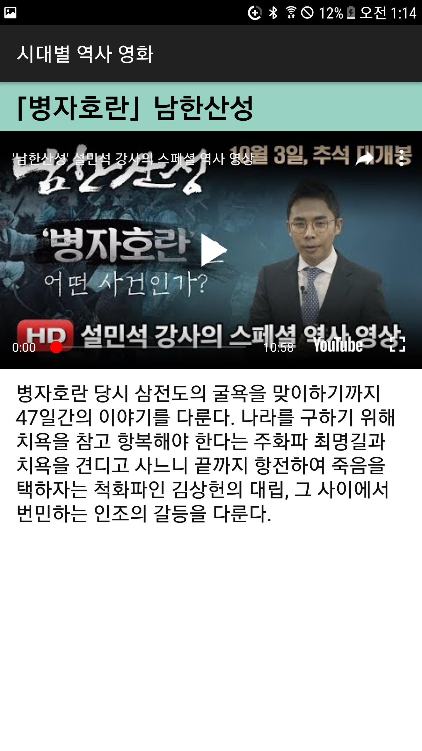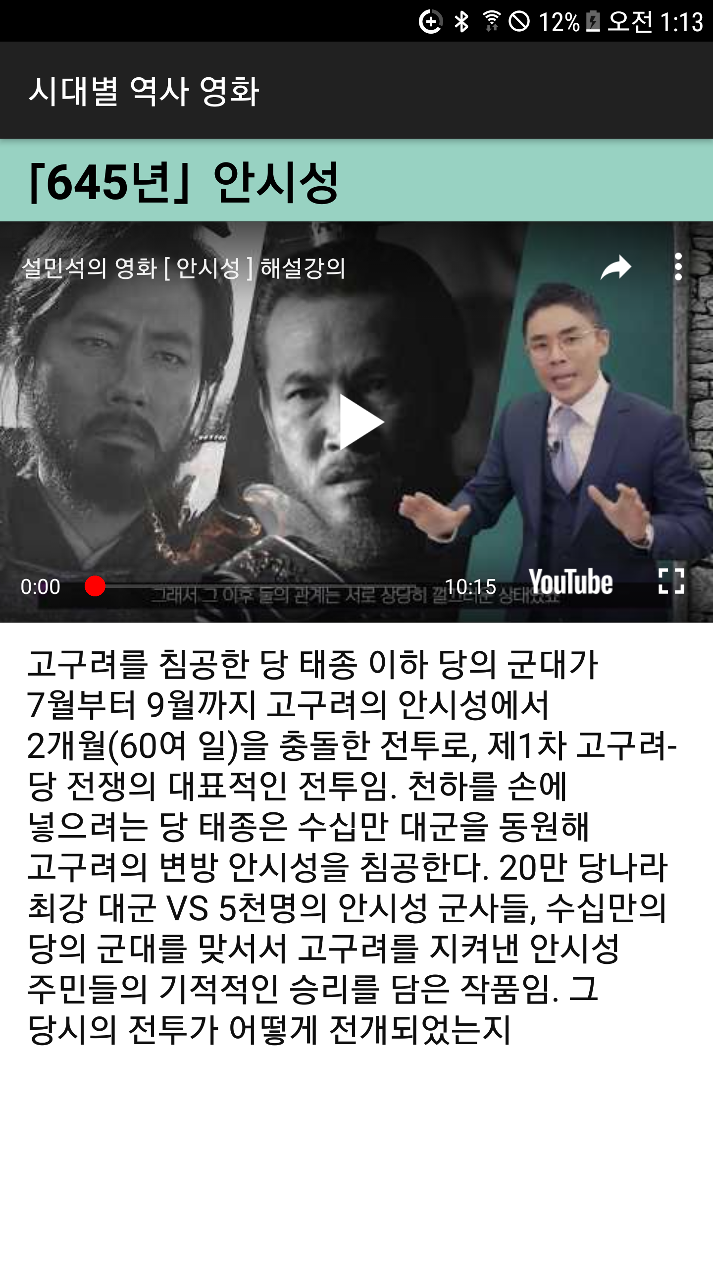 한국사 시대별 영화 + 설민석 선생님 해설 영상 + 유튜브 영상 - Google Play 앱