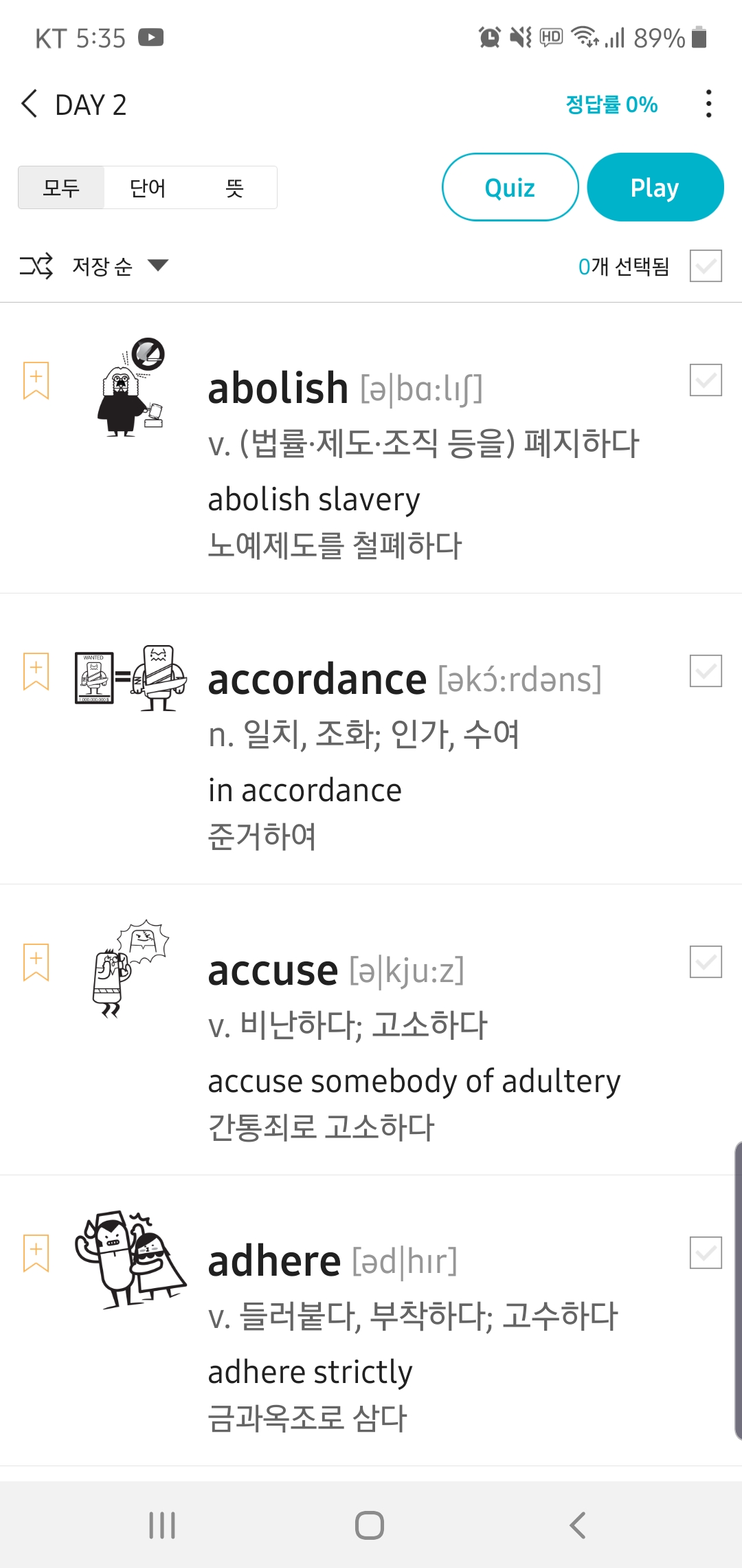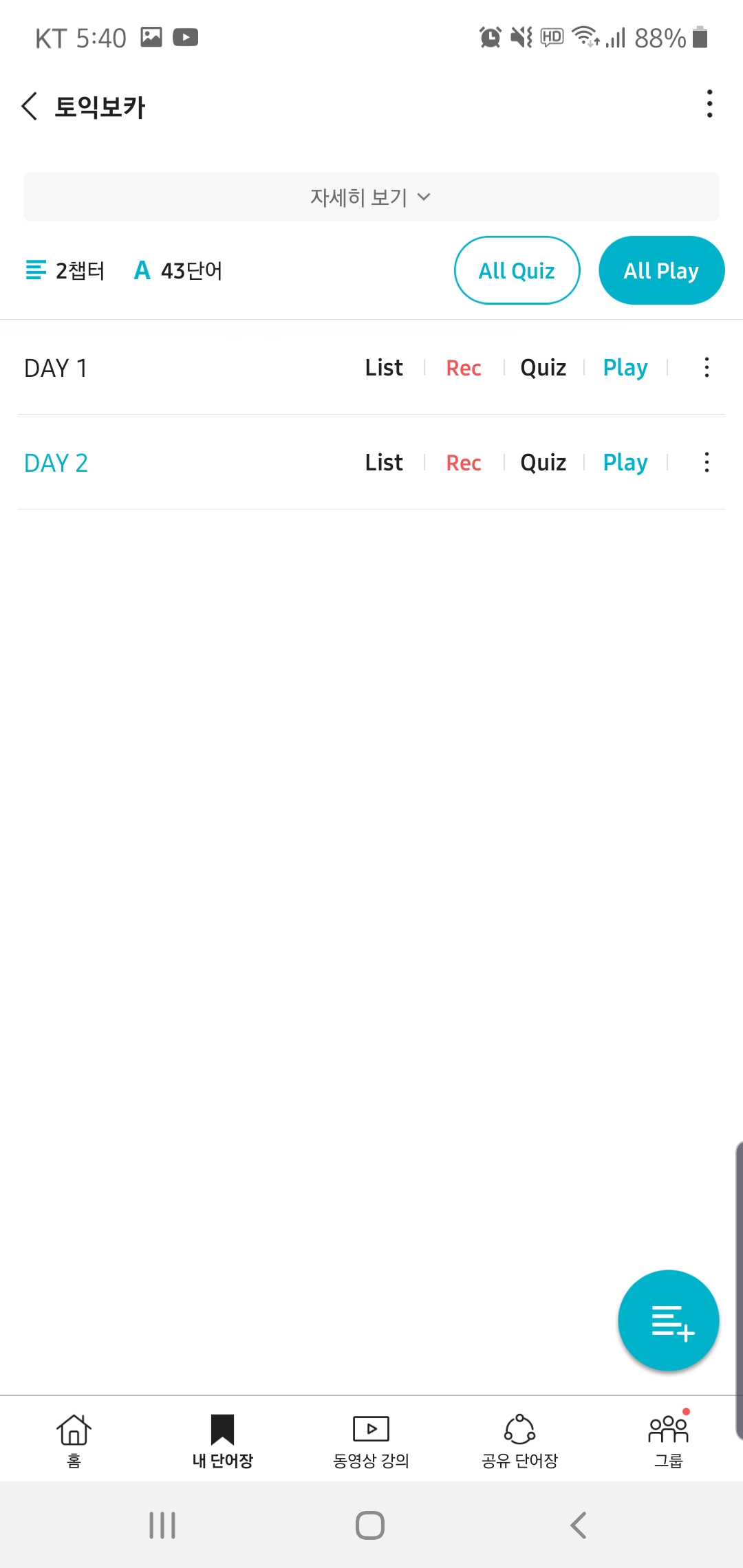 어느 정도 준비가 되면 토익보카 앱을 이용해서 퀴즈를 풀며 마무리~