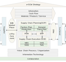 SCM 썸네일형 리스트형 SCM (Supply Chain Management) 1 SCM(Supply Chain Management) 정의:고객의 요구사항 만족 위해 기업 내.외부에 존재하는 공급사슬 을 프로세스를 최적화하는 시스템 2 SCM의 기대효과 -정량적효과:재고,창고,운송 비용개선 효과 주문/생산 Cycle 개선 -정성적 효과:사내업무 정형화, 철저한 납기/영업관리,공급사슬간의 원활한 정보교환 3 SCM Frame work -SCP:의사결정과 업무 지원 S/W, 수요/재고/생산/재고보충 계획등 -SCE:주문사항 처리 및 불만사항을 품질에 반영,물류,수송등 공급망 지원 AOM(Advanced Ordering Mgt):Cross Docking System 지원 주문처리 시스템 WMS(Warehouse Mgt System):창고관리 시스템 TMS(Transportaton Mgt.. 더보기 이전 1 다음
